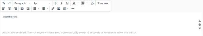 Pour garantir la protection de votre travail, la boîte de commentaires comprend désormais un système intégré de sauvegarde automatique (autosave). Il n'y a plus de bouton "Enregistrer" manuel.