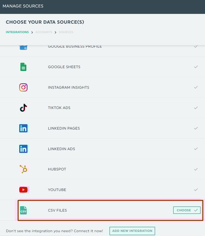 Étape 3 : Lier la source CSV à votre/vos tableau(x) de bord (Gérer les sources)