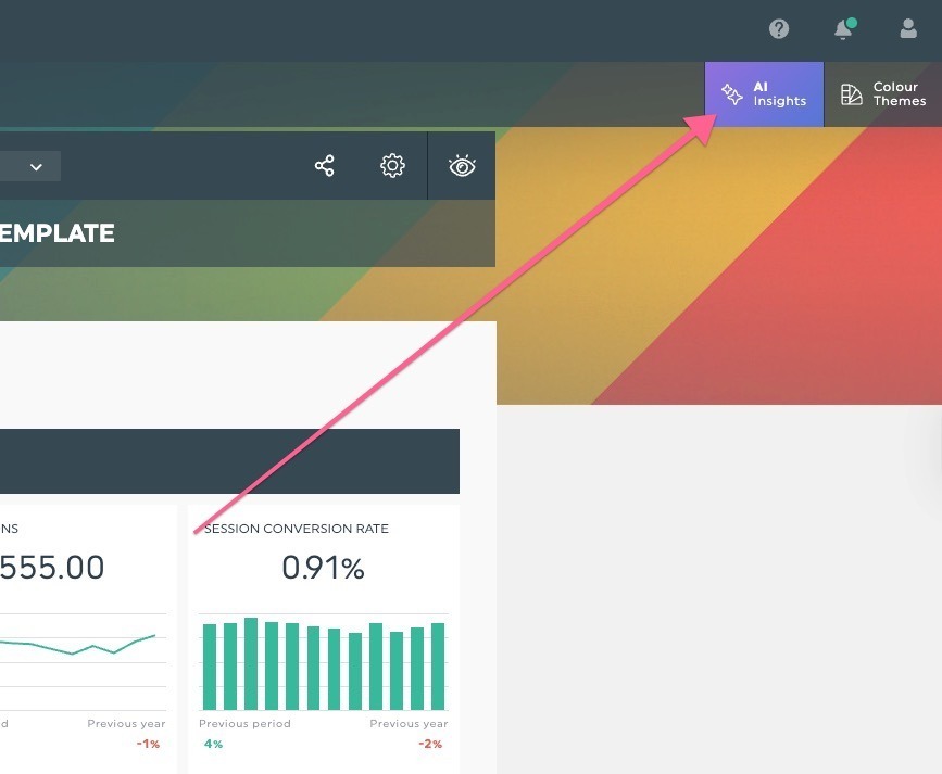 - Ouvrez le panneau "AI Insights", dans le coin supérieur droit du tableau de bord que vous souhaitez analyser.