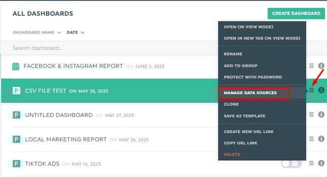 Step 3: Link the CSV source to your dashboard(s) (Manage sources)