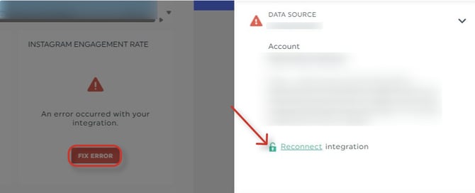 If your old data source is in error within your dashboard, you can easily reconnect it to a new account.