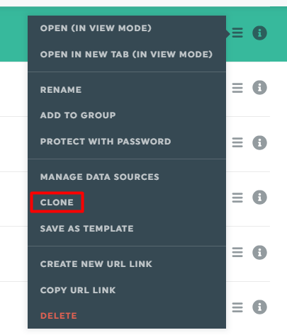 Click on “Clone” beside the dashboard you want to copy.