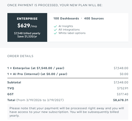 You will then see an overview of your order details (no payment is processed here)